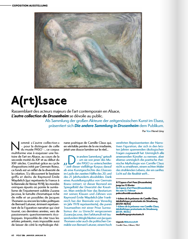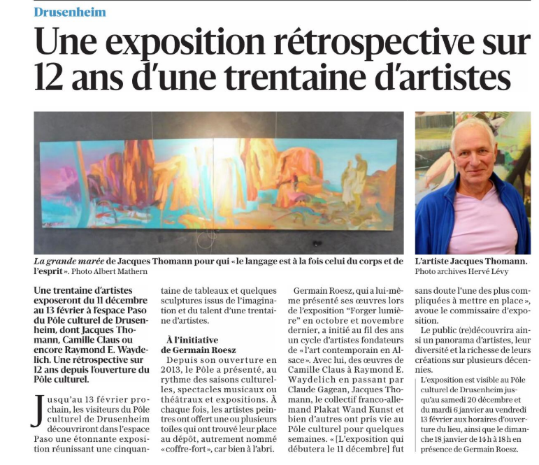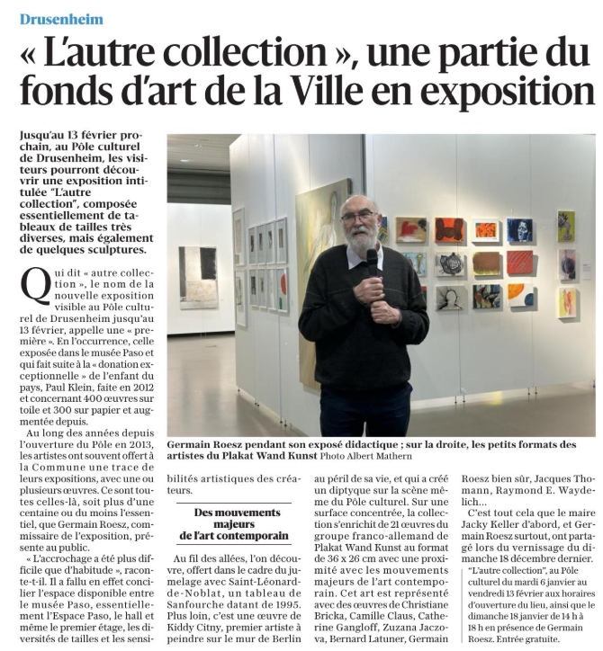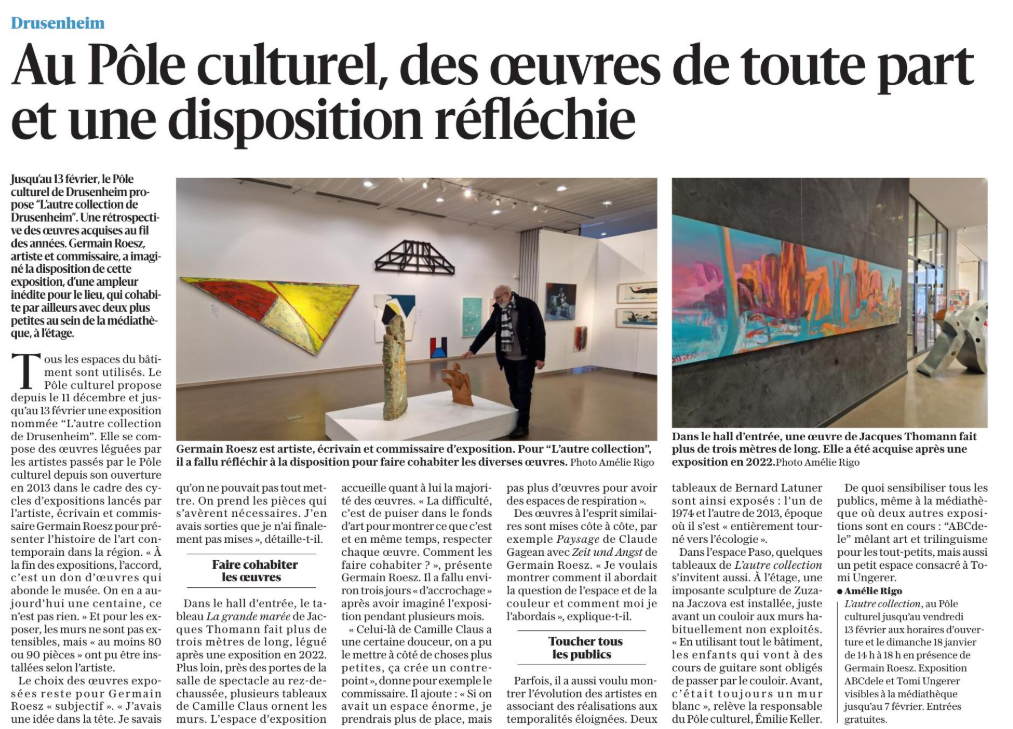 L’exposition en cours « L’autre collection de Drusenheim » a fait l’objet de plusieurs articles mettant en lumière la richesse du fonds d’art de la Ville et sa présentation au Pôle Culturel.