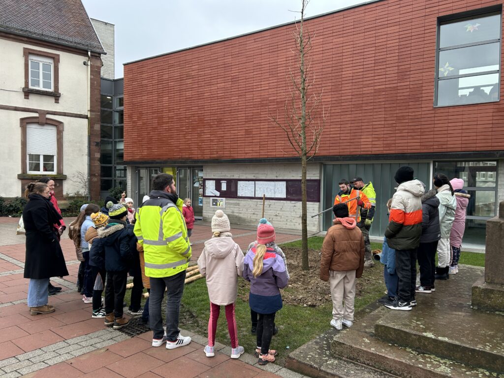 Dans le cadre de l’appel à projet PEJ « Protéger l’environnement, j’adhère ! », la classe bilingue CE2, dirigée par Marie-Christine HANTZSCHE, a déposé une candidature sur le thème « Le réaménagement de la place devant l’école – créer un îlot de verdure et de fraîcheur au centre de la commune ». Ce projet incarne une démarche concrète de protection de la nature, tout en offrant aux élèves une occasion d’apprendre à travers des activités pédagogiques et des interventions pratiques.
